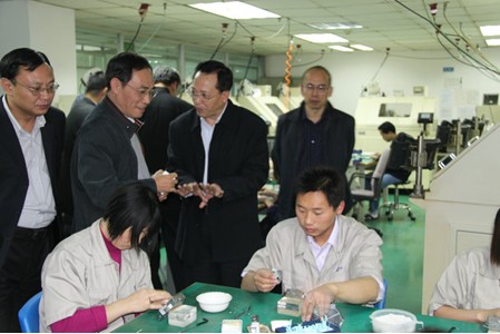 在對太辰光通信進行調研過程中,張思平部長一行聽取了太辰光通信張致民董事長的匯報,并深入生產車間,了解公司擁有自主知識產權的拋光機、刷角機、外徑加工機、自動PC加工機、自動外徑檢測儀、同芯度檢測儀、插芯尾座壓入機、插芯內孔圓度圖像識別檢測機等產品和設備的加工制作流程。張思平部長對太辰光通信在物聯(lián)網、傳感網等戰(zhàn)略性新興產業(yè)中的研發(fā)設計、先進制造和高科技生產裝備的開發(fā)等能力給予了高度評價。針對太辰光通信提出的新廠房選址的問題,張思平部長表示要加快啟動相關程序,積極推進解決生產用地問題。