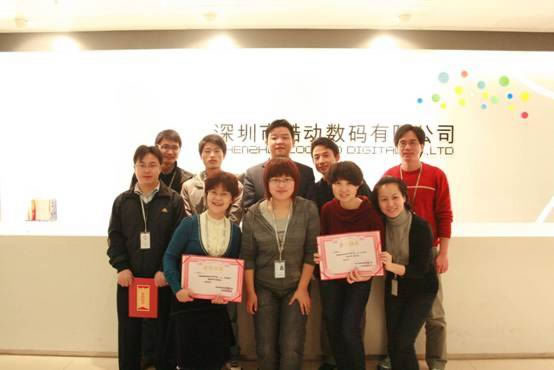 23日早,早會的時間,舉行了乒乓球大賽的頒獎儀式,劉浩總經(jīng)理為所有獲獎選手頒發(fā)獎品及榮譽證書。本次乒乓球大賽獲得圓滿成功,酷動數(shù)碼同仁將延續(xù)比賽中展現(xiàn)出來的激情,以昂揚的姿態(tài)投入到工作中。